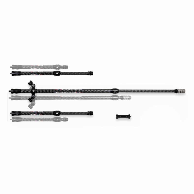 Arc Systeme Telescopic Stabilizer Kit AS X18 Comp is a modular stabiliser system with 18 mm HR carbon construction, available in recurve and compound configurations with multiple mounting and tilt options.