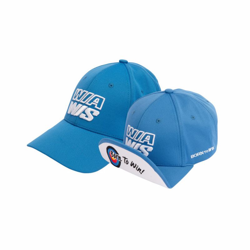 Cap in Wiawis’ signature blue colorwith folding brim designed to reduce interference with bowstring and arm during shooting, featuring target motif and “Born to WIN” branding for clear identity.