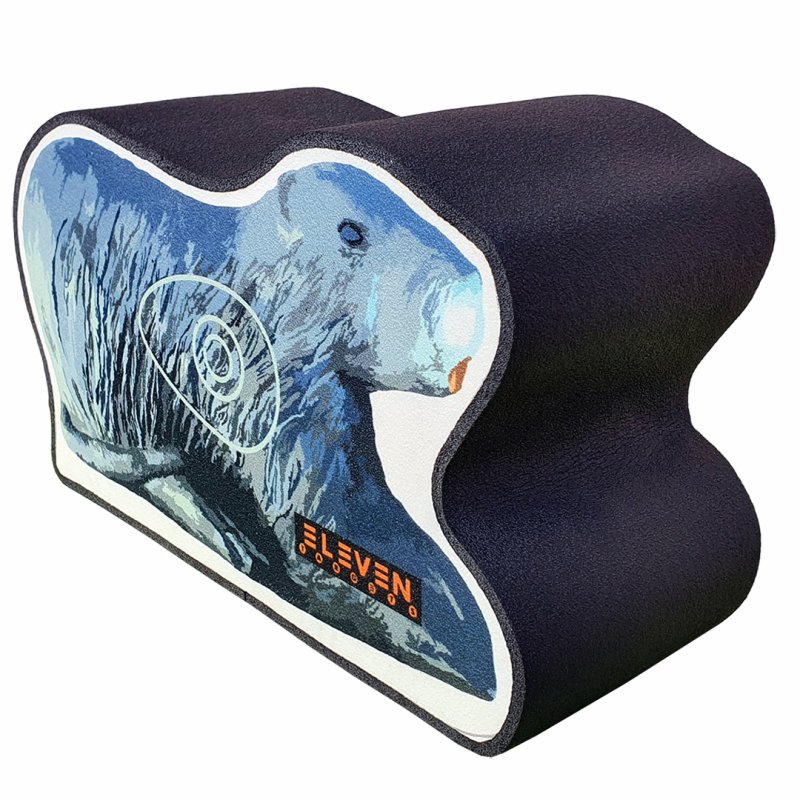 2½D Nutria target from Eleven showing a printed beaver‑style silhouette, suitable for recurve bows up to 30 lbs and compact in size at around 1 kg for varied field layouts.